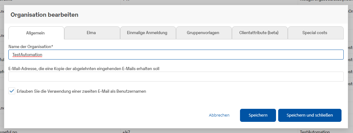 Organisationsname Dies ist der Name der Organisation, der auf der Login-Seite und in der oberen rechten Ecke angezeigt wird.