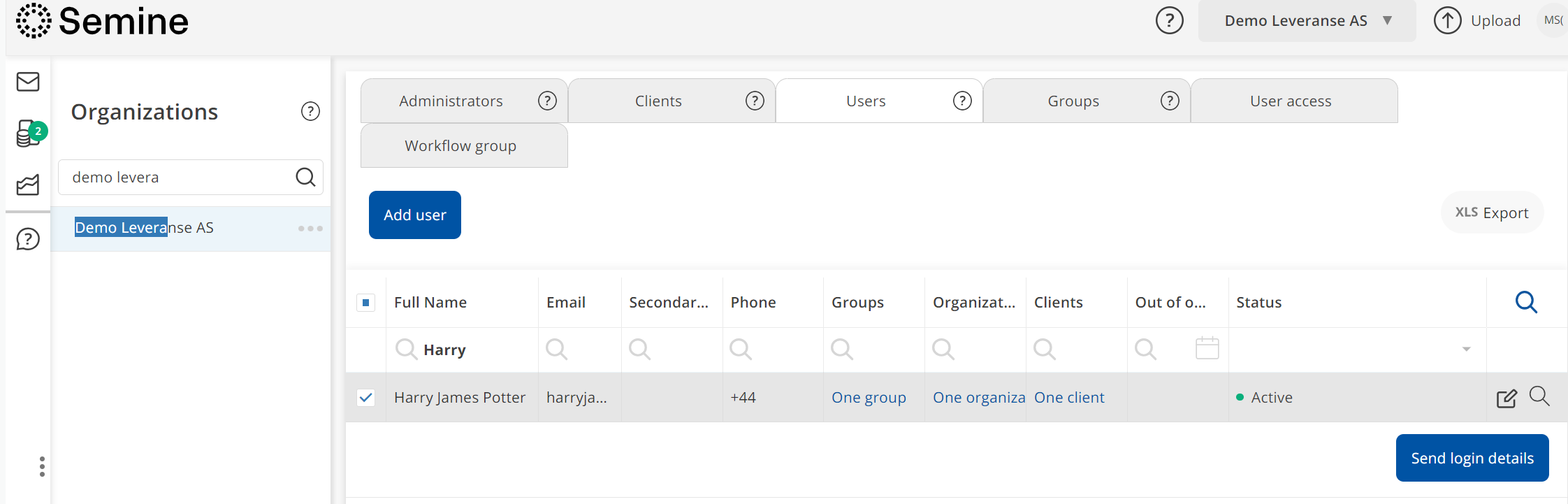 - Click on the blue button at the bottom right "send login details"