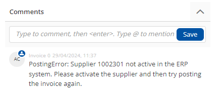 This message will appear as a comment on the invoice in SEMINE which will enable the customer's administrator to correct any issues in ERP system before trying to post the invoice again.