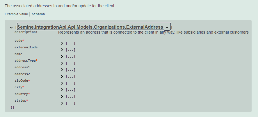 The addresses or codes that should be available for reinvoicing must be inserted through the integration API. They do not appear in SEMINE's client settings.