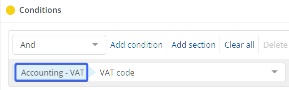 In the conditions, blue headers are now displayed to more easily distinguish between identically named condition fields such as the different "VAT code" conditions for Accounting or for PO. (39416) -