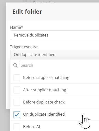 A new trigger event has been introduced which starts after a duplicate invoice has been detected. This enables further automatic processing of the duplicate invoice such as deleting (archiving) it. (39618) - Improved UI for conditions menu