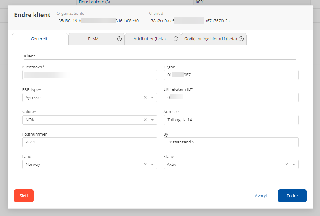Navigasjon: Logg inn som administrator. Gå til: Organisasjon --> Klienter --> Dobbeltklikk på klient.