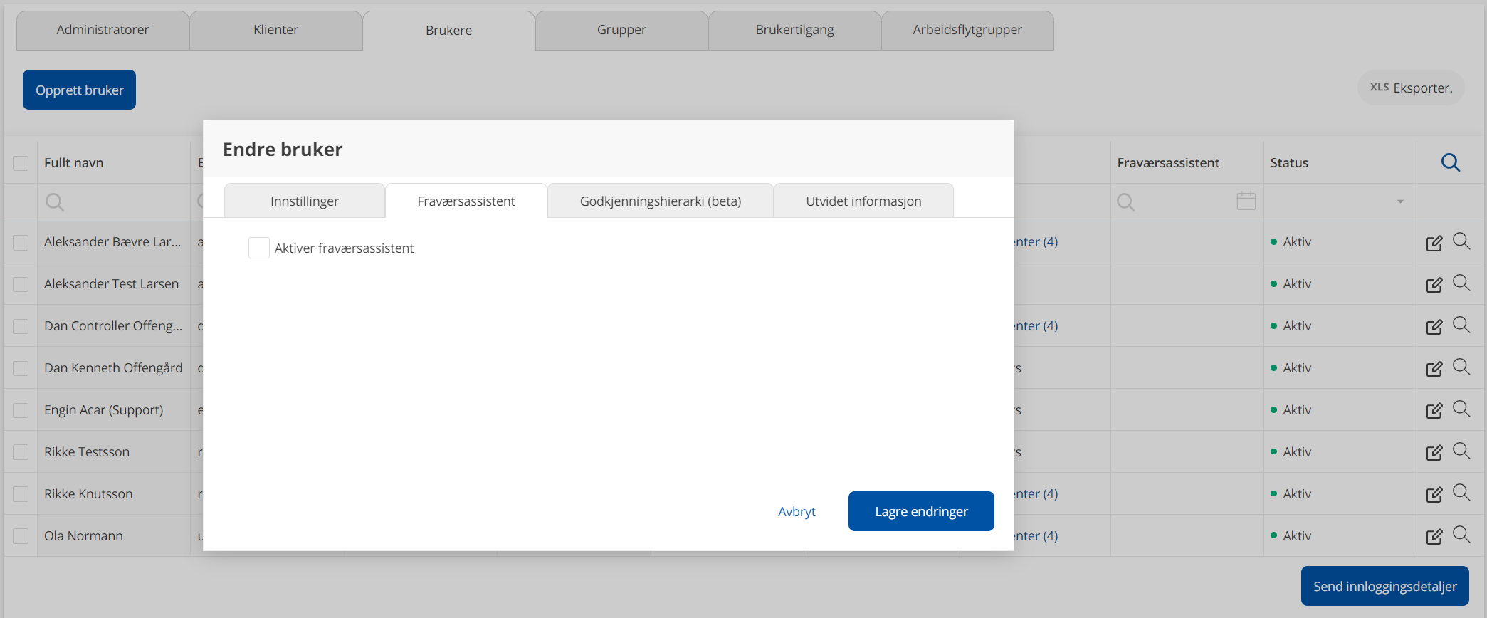 Adminpanel - Rediger bruker - Fraværsassistent: