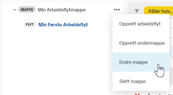 Merk: Arbeidsflytene inni mappen kjøres kun dersom mappens betingelser oppfylles.