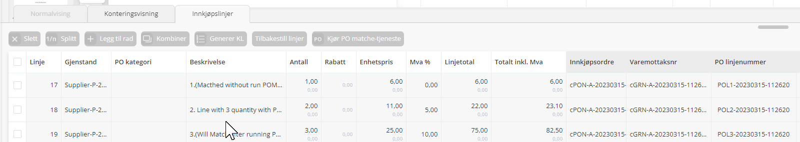 Matchingforslag over grenseverdien vil påføres automatisk på fakturalinjen.