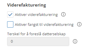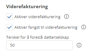 - Her er det mulig å manuelt huke av for at faktura skal ende opp i status "Viderefakturering".